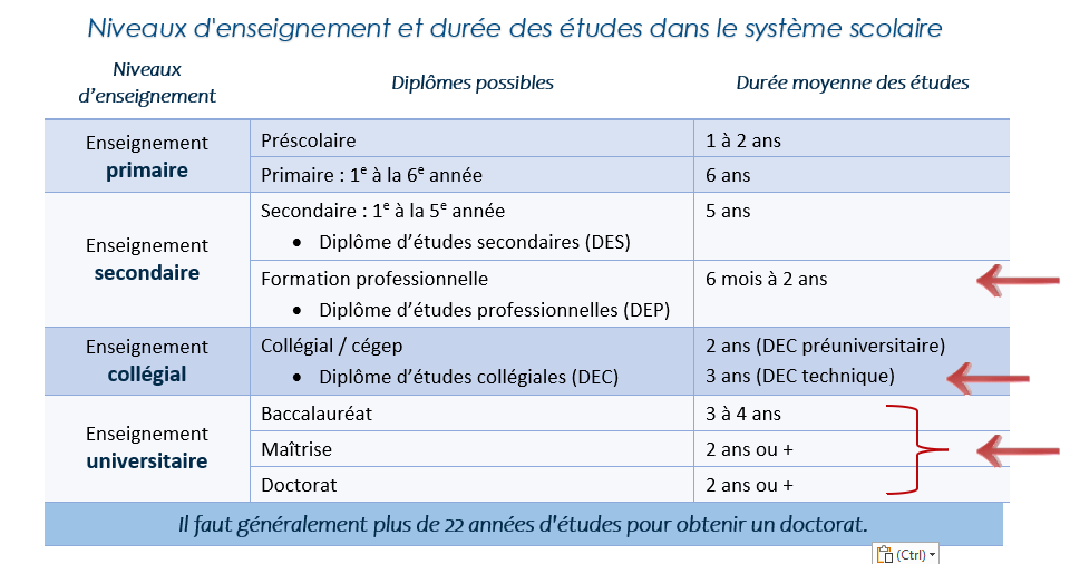 Veuillez notez que ce tableau est un résumé et qu’il existe d’autres options de diplômes disponibles. Pour obtenir des informations détaillées et explorer pleinement le système scolaire québécois ainsi que les différentes options de diplômes pour chaque niveau, il est recommandé de consulter le site Web interactif SystemeScolaireQuebecois.com.